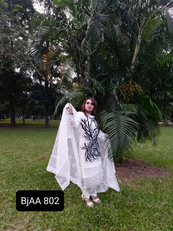 পাকিস্তানি সাদা বাহার স্টিচ্ 3 পিস্